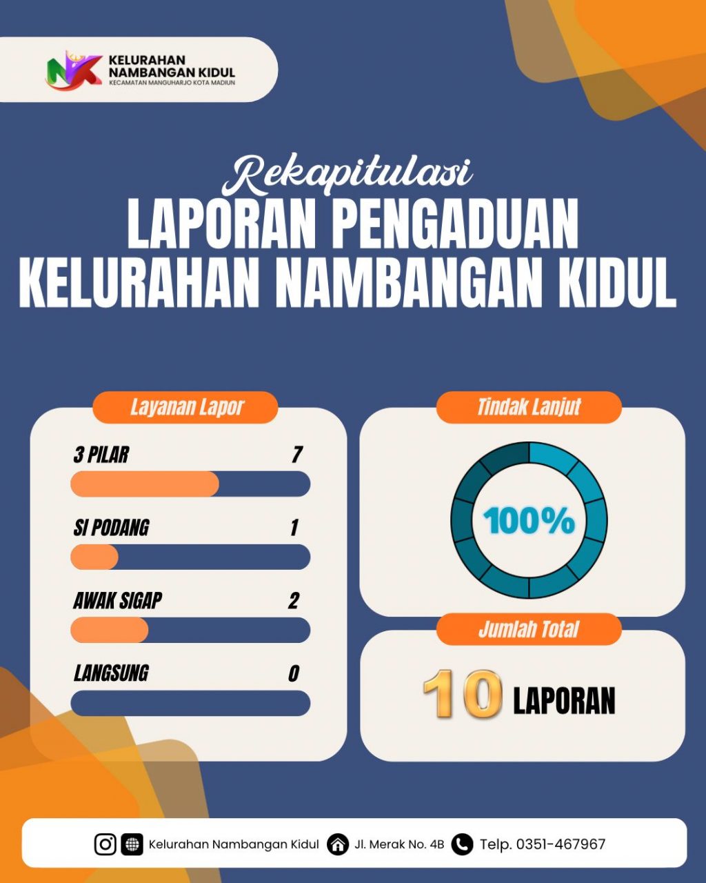 Jumlah laporan pengaduan masyarakat yang masuk sejak Januari hingga September 2025 tercatat dan sudah ditindak lanjuti sebanyak 10 laporan pengaduan. laporan pengaduan tersebut diakses masyarakat baik melalui laporan kepada 3 Pilar ataupun melalui inovasi SI PODANG. Pengaduan yang disampaikan masyarakat meliputi berbagai bidang, mulai dari pelayanan publik, infrastruktur, lingkungan, sosial, hingga tindak pelanggaran hukum dan…